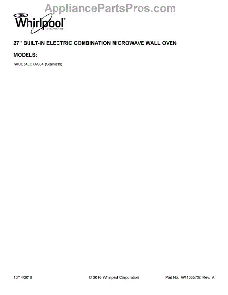 Parts for Whirlpool WOC54EC7AS04: 01 - Cover Sheet Parts