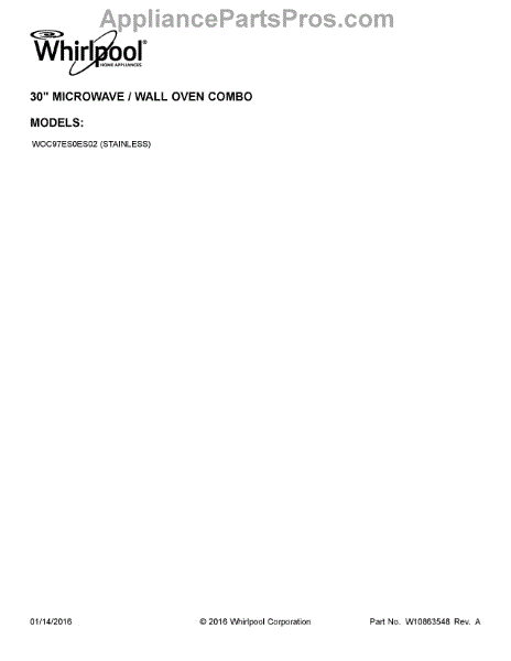 Parts for Whirlpool WOC97ES0ES02: 01 - Cover Sheet Parts