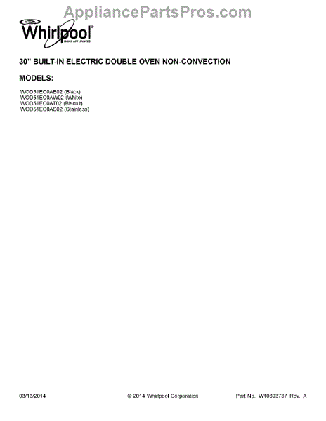 Parts for Whirlpool WOD51EC0AW02: 01 - Cover Sheet Parts
