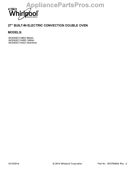 Parts for Whirlpool WOD93EC7AB03: 01 - Cover Sheet Parts