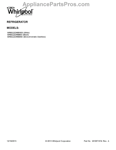 Parts for WRB322DMBW00