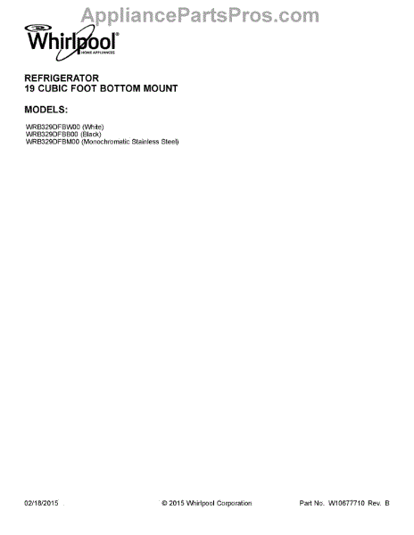 Parts for Whirlpool WRB329DFBW00: 01 - Cover Sheet Parts