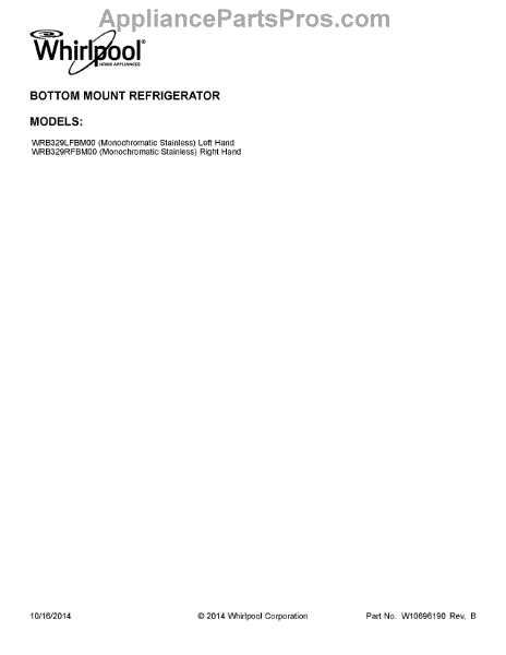 Parts for Whirlpool WRB329RFBM00: 01 - Cover Sheet Parts