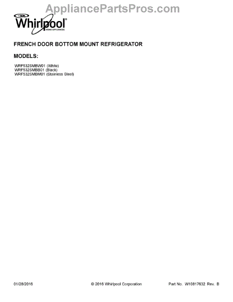 Parts for Whirlpool WRF532SMBW01: 01 - Cover Sheet Parts
