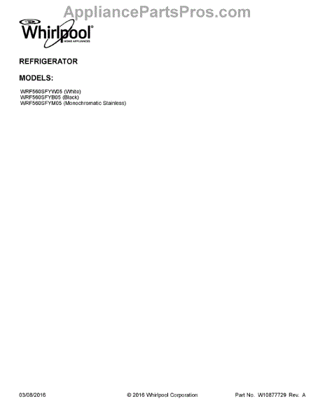 Parts for Whirlpool WRF560SFYM05: 01 - Cover Sheet Parts