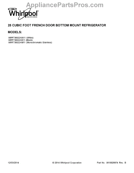 Parts for Whirlpool WRF736SDAM11: 01 - Cover Sheet Parts