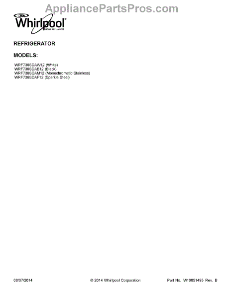 Parts for Whirlpool WRF736SDAM12: 01 - Cover Sheet Parts