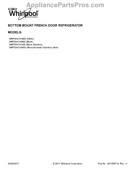 Parts for Whirlpool WRF954CIHW00: 01 - Cover Sheet Parts
