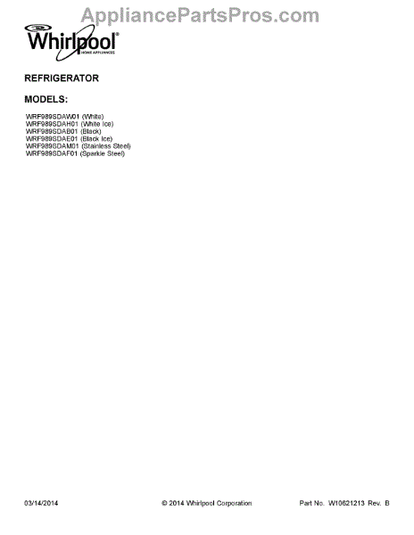 Parts for WRF989SDAM01