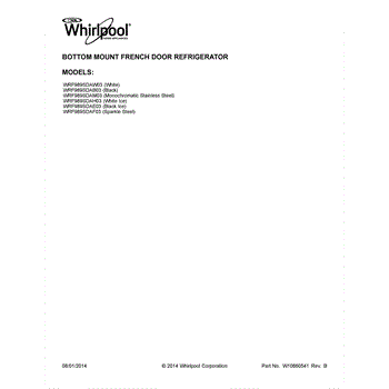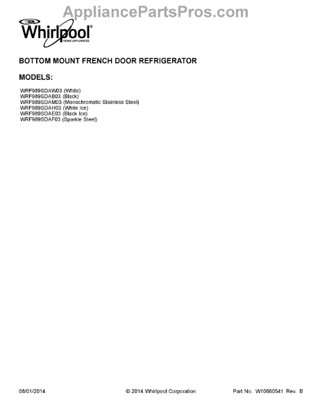 Parts for Whirlpool WRF989SDAM03: 01 - Cover Sheet Parts