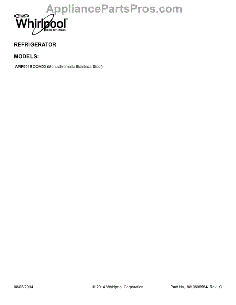 Parts for Whirlpool WRF991BOOM00: 01 - Cover Sheet Parts