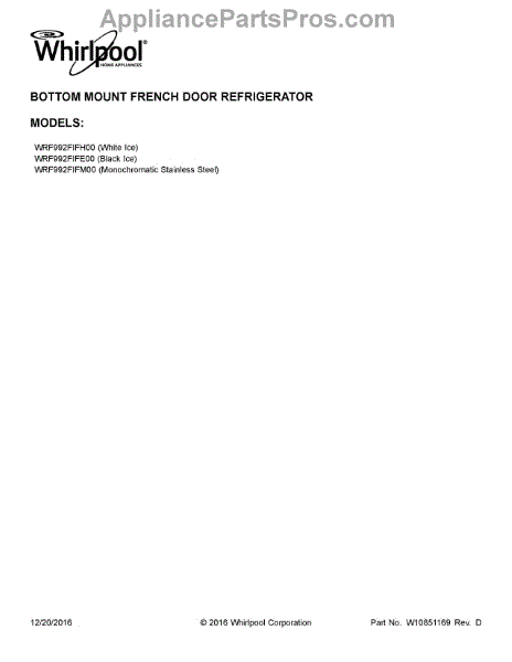 Parts for WRF992FIFE00