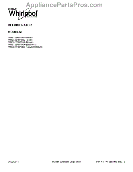 Parts for Whirlpool WRS322FDAD00: 01 - Cover Sheet Parts