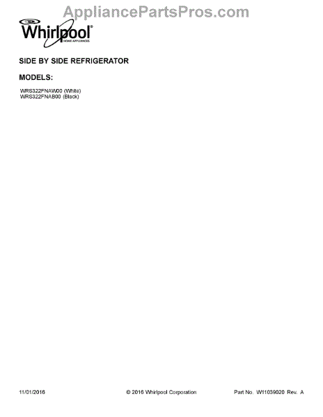 Parts for Whirlpool WRS322FNAW00: 01 - Cover Sheet Parts