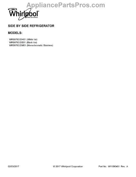 Parts for Whirlpool WRS970CIDM01: 01 - Cover Sheet Parts