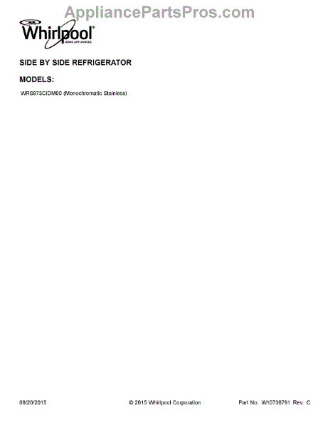 Parts for Whirlpool WRS973CIDM00: 01 - Cover Sheet Parts