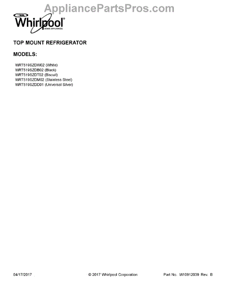 Parts for Whirlpool WRT519SZDW02: 01 - Cover Sheet Parts