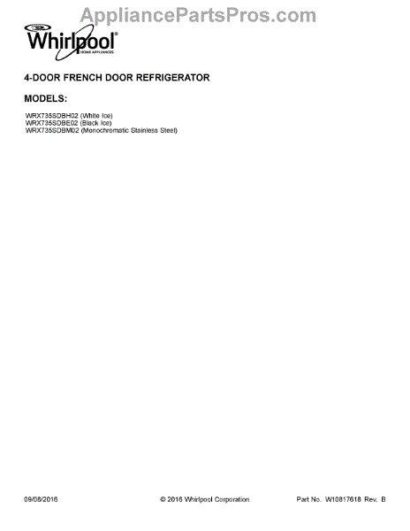 Parts for Whirlpool WRX735SDBH02: 01 - Cover Sheet Parts