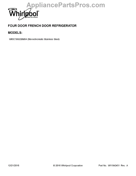 Parts for Whirlpool WRX735SDBM04: 01 - Cover Sheet Parts