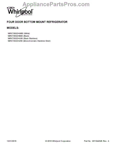 Parts for Whirlpool WRX735SDHB00: 01 - Cover Sheet Parts