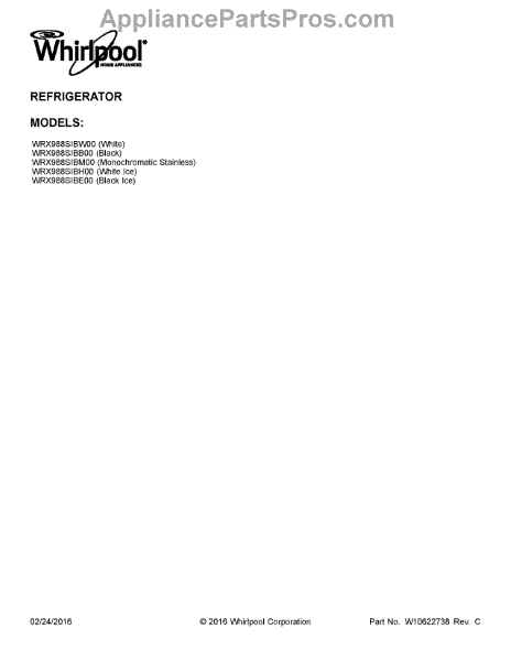 Parts for Whirlpool WRX988SIBB00: 01 - Cover Sheet Parts