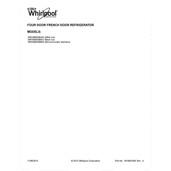Parts for Whirlpool WRX988SIBE03: 01 - Cover Sheet Parts