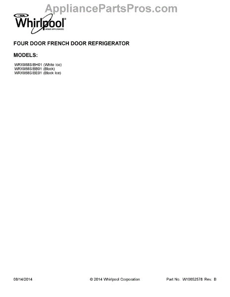 Parts for Whirlpool WRX988SIBH01: 01 - Cover Sheet Parts