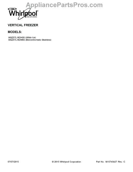 Parts for Whirlpool WSZ57L18DH00: 01 - Cover Sheet Parts