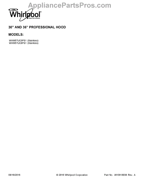 Parts for Whirlpool WVW57UC6FS1: 01 - Cover Sheet Parts
