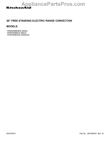 Parts for Whirlpool YKFEG500ESS0: 01 - Cover Sheet Parts