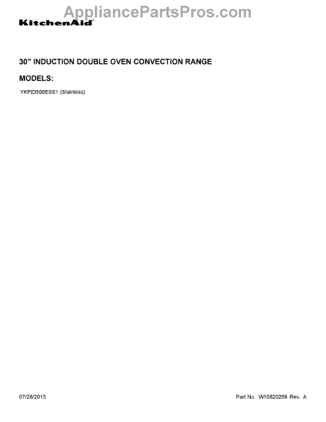 Parts for Whirlpool YKFID500ESS1: 01 - Cover Sheet Parts