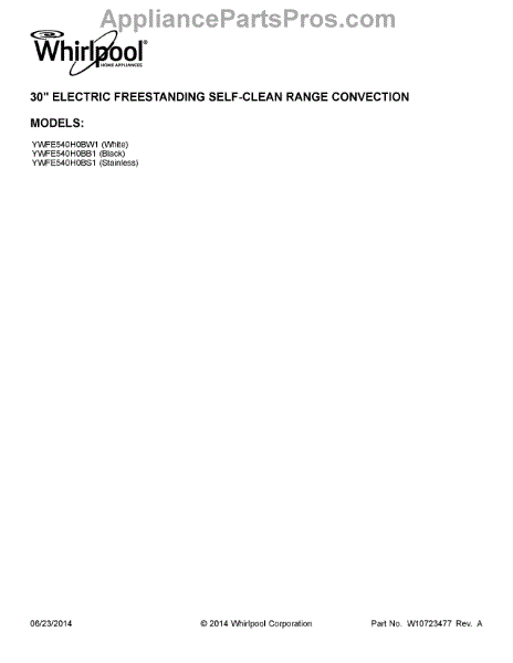 Parts for Whirlpool YWFE540H0BW1: 01 - Cover Sheet Parts