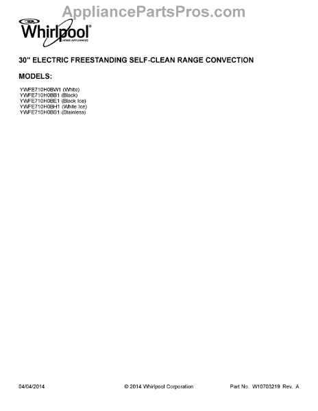 Whirlpool Range Parts