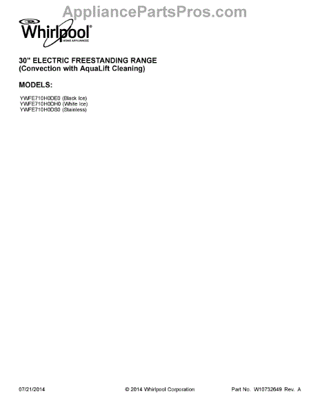 Parts for Whirlpool YWFE710H0DE0: 01 - Cover Sheet Parts