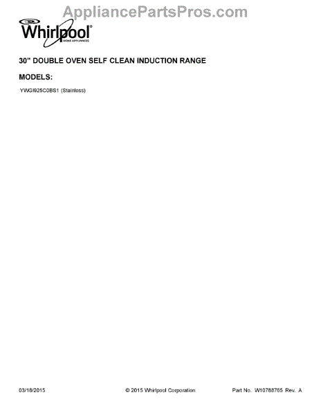 Parts for Whirlpool YWGI925C0BS1: 01 - Cover Sheet Parts