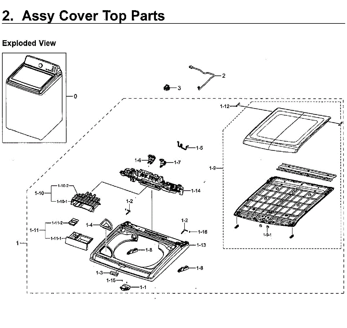 Parts for Samsung WA40J3000AW/A2-13: Cover Top Parts