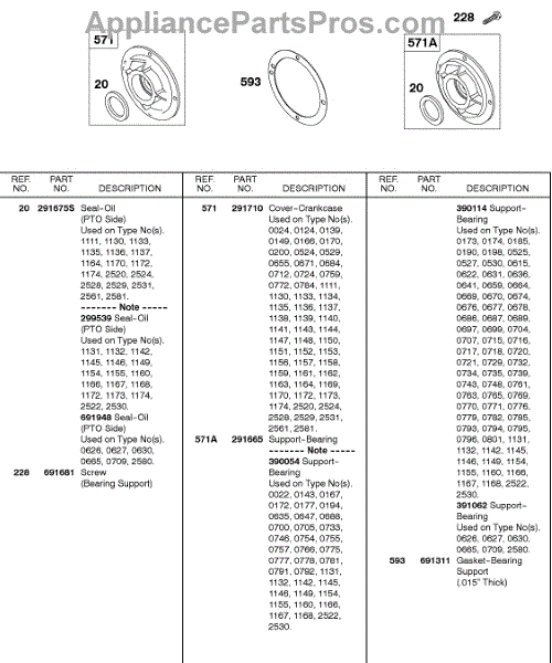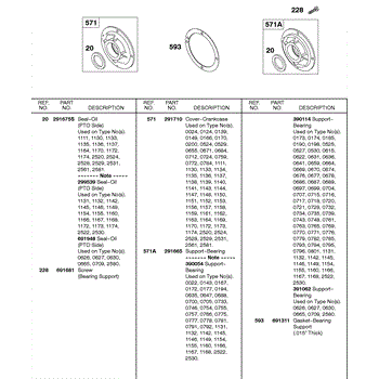 Parts for Briggs & Stratton 243431-0010-99: Crankcase Cover, Bearing Support Parts