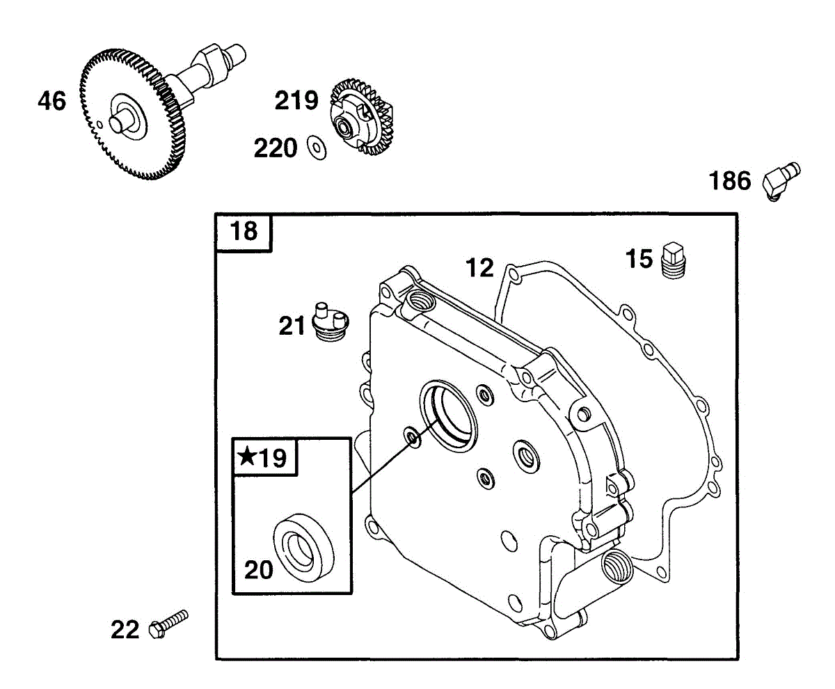 Parts for Briggs & Stratton 19B412-0567-99: Crankcase Cover, Cam Parts