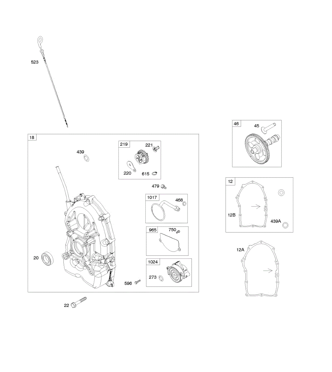 Parts for Briggs & Stratton 543277-0112-E1: Crankcase Cover, Camshaft, Crankcase Cover Gaskets Parts