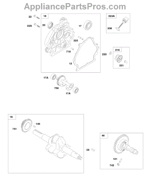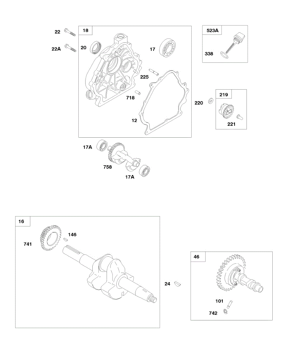 Parts for Briggs & Stratton 246435-0111-B1: Crankcase Cover, Crankshaft, Camshaft Parts