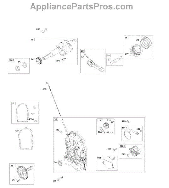 Parts for Briggs & Stratton 611477-0110-E1: Crankcase Cover, Crankshaft, Pistons, Connecting Rod Parts