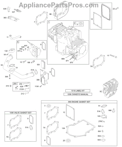 Parts for Briggs & Stratton 461707-0145-E3: Crankcase Cover / Cylinder, Head, Kit / Gasket Sets - Engine, Kit / Gasket Sets - Valve Parts