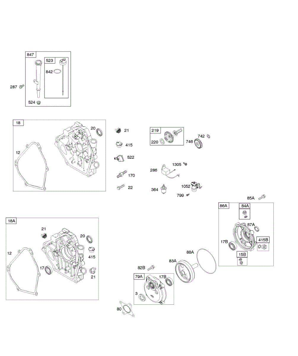 Parts for Briggs & Stratton 121002-1423-B8: Crankcase Cover, Gear Reduction, Lubrication Parts