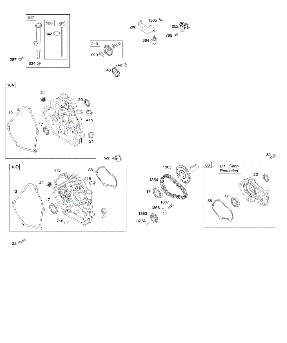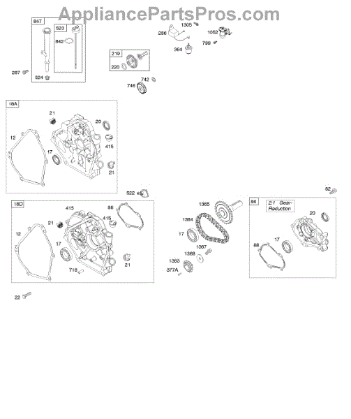 Parts for Briggs & Stratton 121162-4139-B8: Crankcase Cover, Gear Reduction, Lubrication Parts