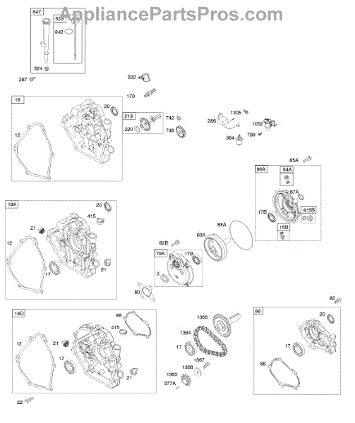 Parts for Briggs & Stratton 122362-5111-H8: Crankcase Cover, Gear Reduction, Lubrication Parts