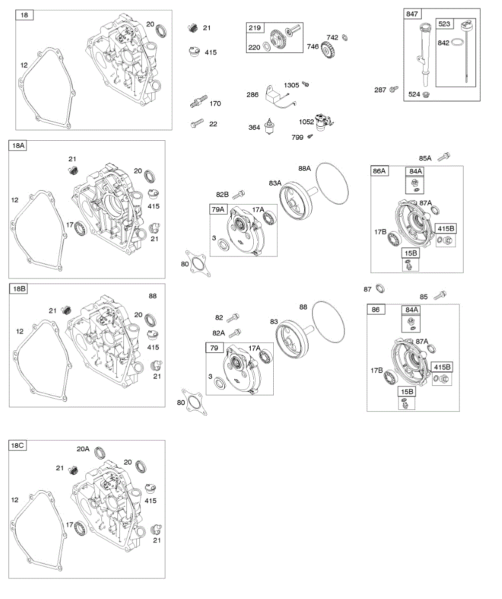 Parts for Briggs & Stratton 126312-0296-B8: Crankcase Cover, Gear Reduction, Lubrication Parts