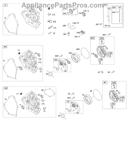 Parts for Briggs & Stratton 127332-0161-E1: Crankcase Cover, Gear Reduction, Lubrication Parts