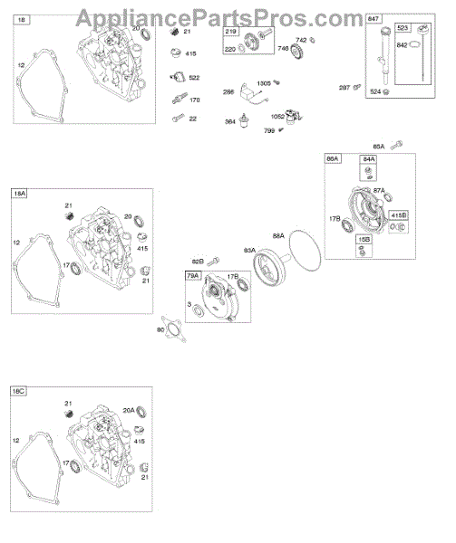 Parts for Briggs & Stratton 12S407-2139-F8: Crankcase Cover, Gear Reduction, Lubrication Parts