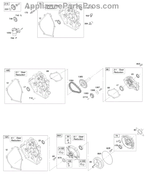 Parts for Briggs & Stratton 13H332-0153-B8: Crankcase Cover, Gear Reduction Parts