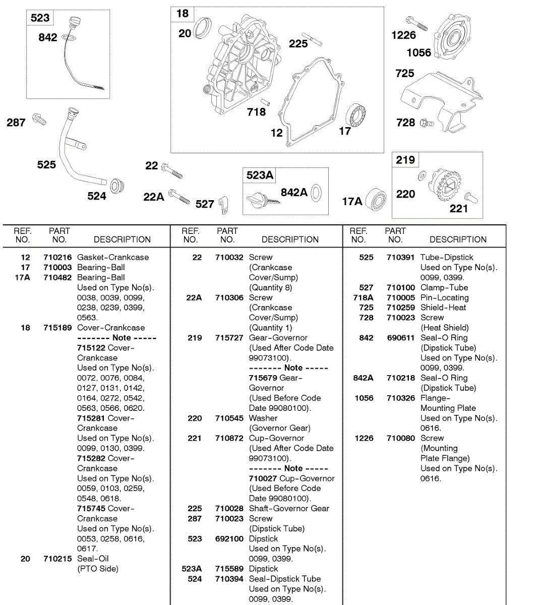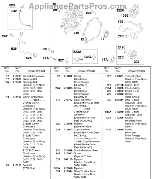Parts for Briggs & Stratton 185432-0047-09: Crankcase Cover, Governor Gear Parts